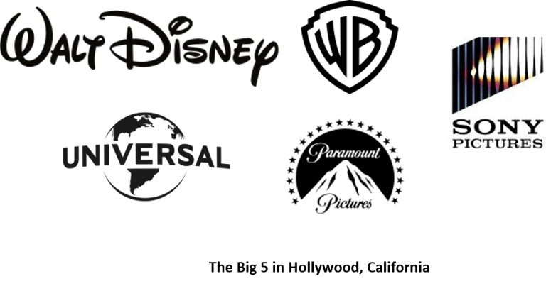 The famous few include Warner Brothers Studio, Disney Studio, Sony Pictures, Pixar Studios, NBC Studios, Universal Studios, Marvel Studios, Paramount Pictures, etc. These big 5 control movie box offices around the world, providing globally popular movies such as James Bond, Mission Impossible, Superman, Spiderman, Marvel Heros, Matrix, etc.