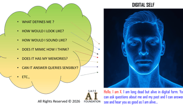Until one is satisfied that the digital self so created with the help of AI largely represents oneself and is safe, he/she can sign off as an authorized digital self to be used or invoked after he/she dies. This consent must be given before the digital self is launch and put to use. There will be others who do not wish to have a digital self and choose to be gone for good, peacefully. The choice is, therefore, yours.