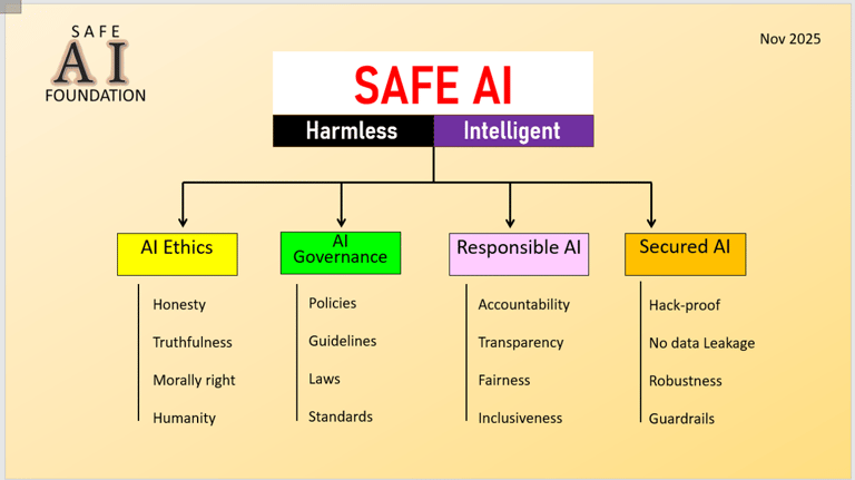 This is why SAFE AI matters. SAFE AI is not simply AI that functions. It is AI that behaves and operates within ethical boundaries. It is AI that respects truths, avoids deception, protects people, and remains accountable to human values. Good AI must meet that same standard. It is not enough for a system to be useful, fast, or impressive. It must also be worthy of the responsibility placed in it.