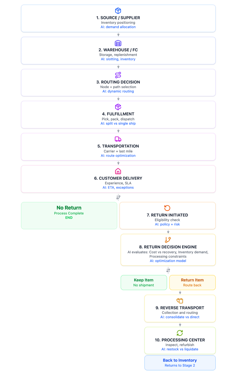 One of the clearest examples of this shift can be seen in how organizations approach returns. Returns are often treated as a reverse logistics problem, but in reality they represent a multi-dimensional decision challenge. Each return requires evaluating eligibility, determining the best destination, and balancing recovery value against operational cost.